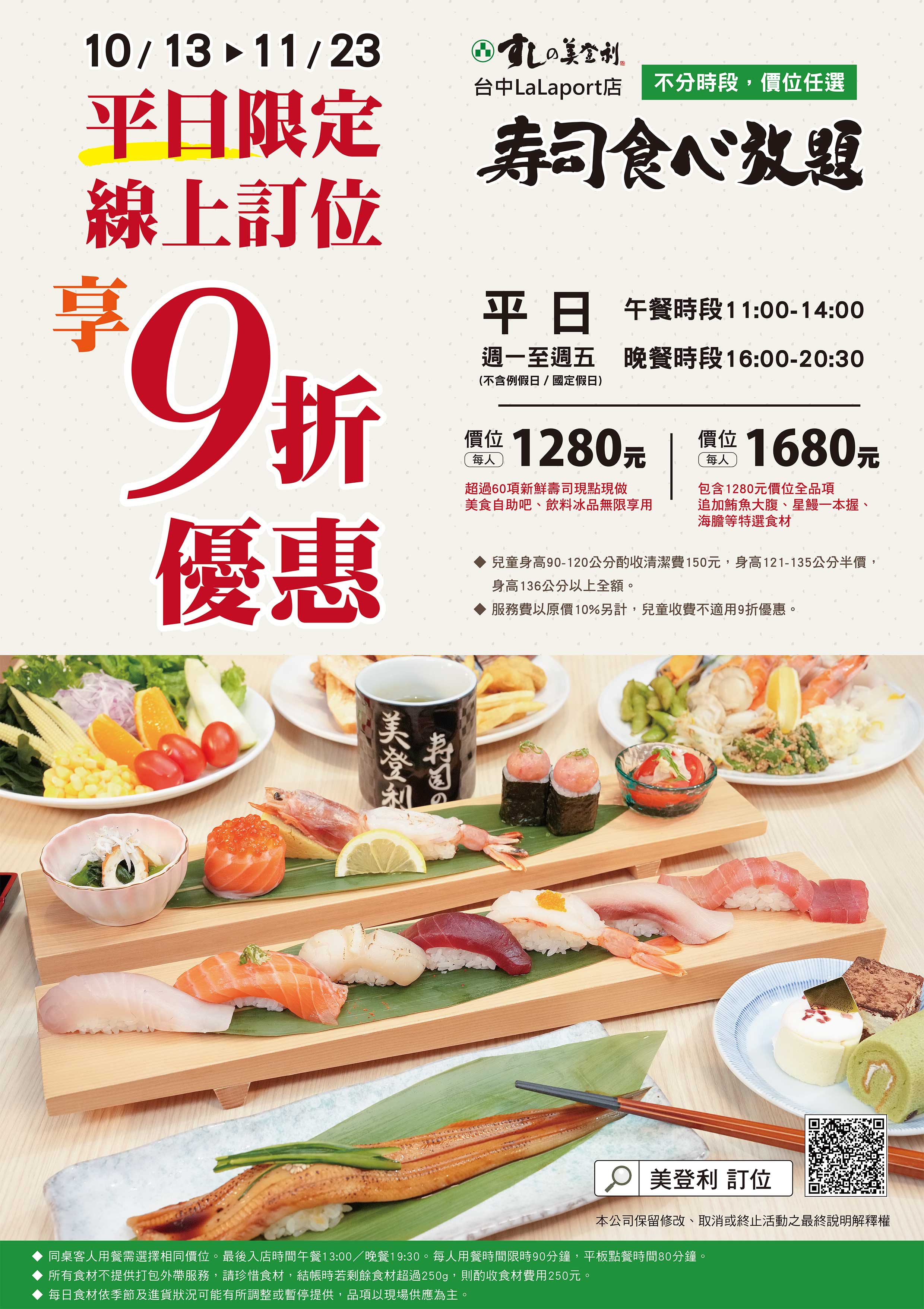 10/13~11/23 平日限定,透過線上訂位即享9折優惠