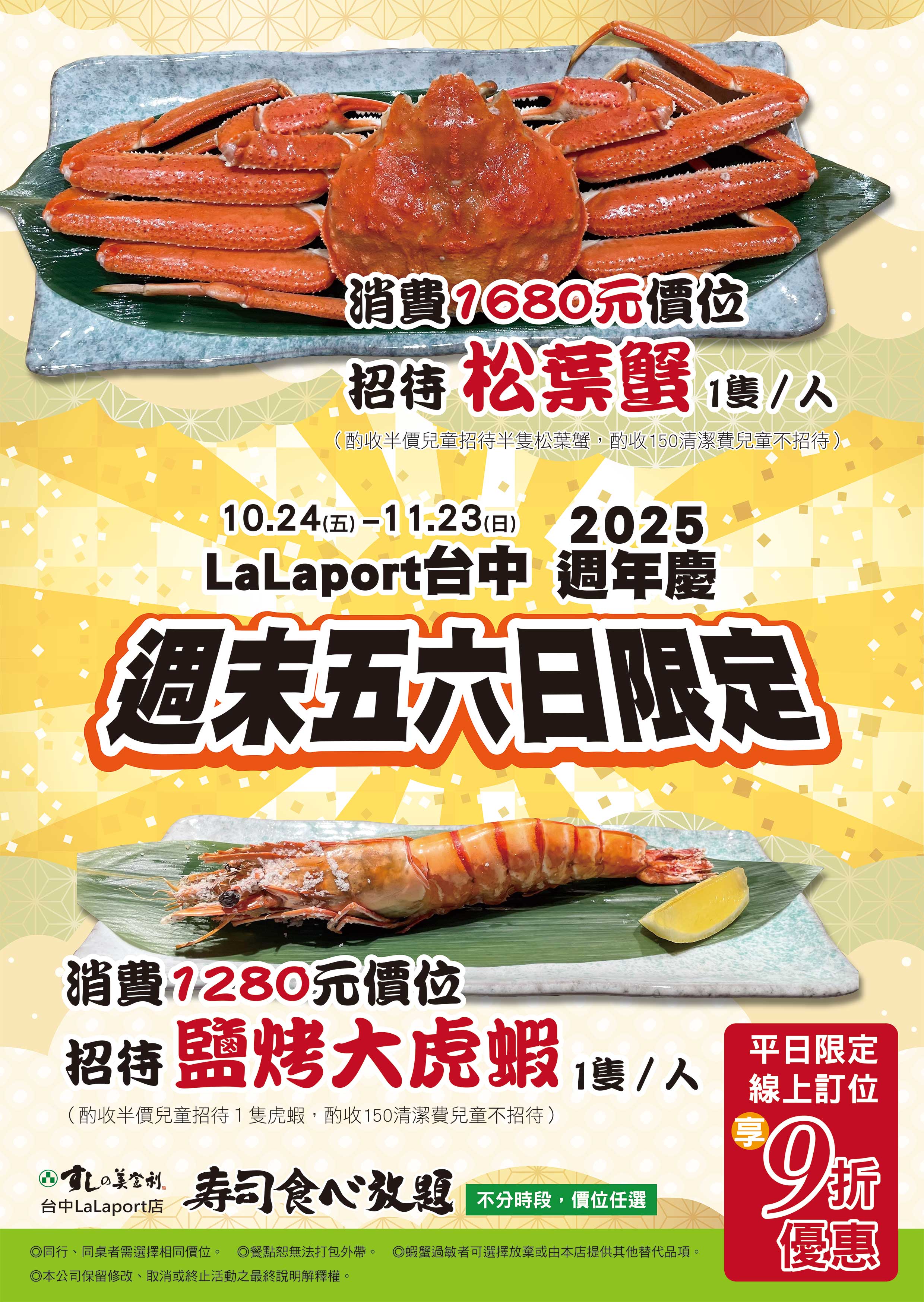 【台中LaLaport店-壽司放題】Lalaport台中週年慶同歡!週末五六日限定