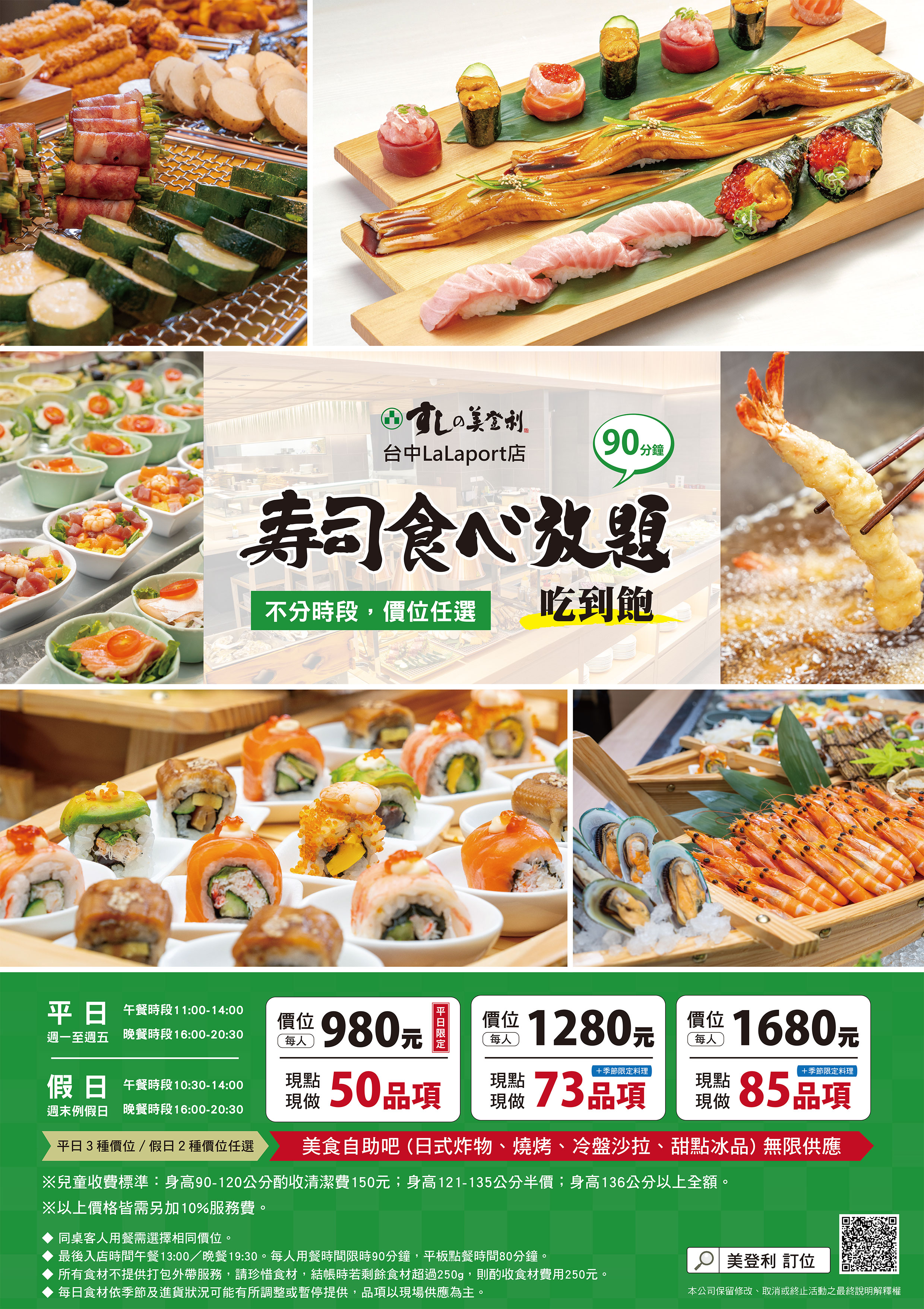 【台中LaLaport店】壽司放題-追加平日限定980元方案